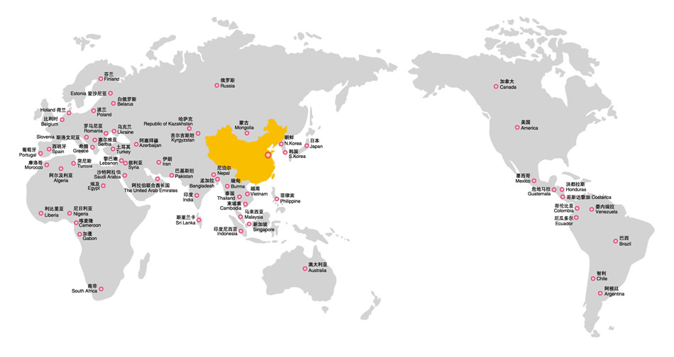 美国、德国、英国、西班牙、丹麦、匈牙利、荷兰、比利时、法国、俄罗斯、朝鲜、韩国、日本、越南、泰国、马来西亚、新加坡、印度尼西亚、台湾。